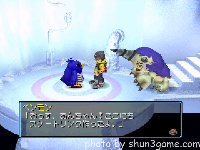 寒さに弱いデジモンを病気状態にしてフリーズランドの画像の場所にいくとイベントが発生します。