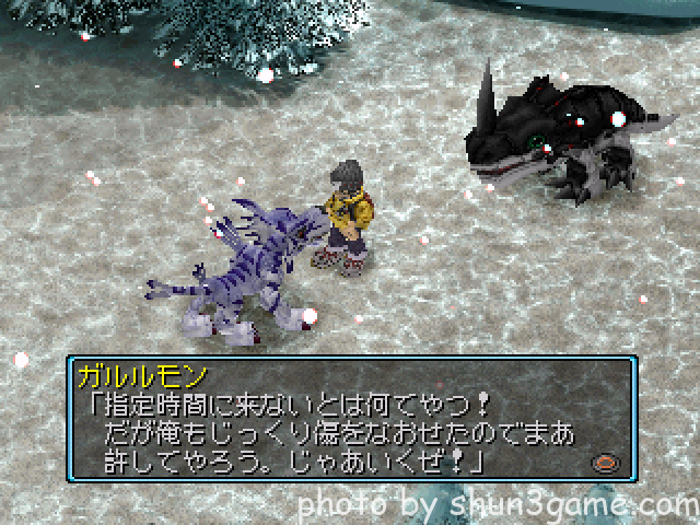 フリーズランドにいるガルルモンに話しかけると戦闘になります。