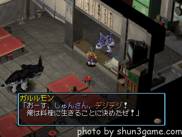 戦闘に勝利するとガルルモンが街に参加します。