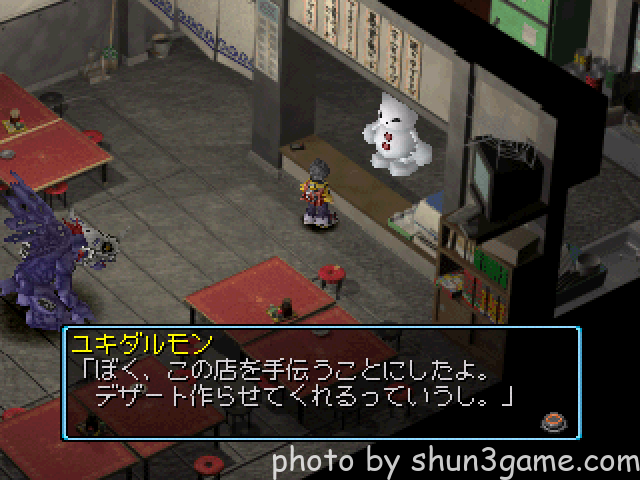 街では勧誘できるデジモンのヒントを教えてくれます。