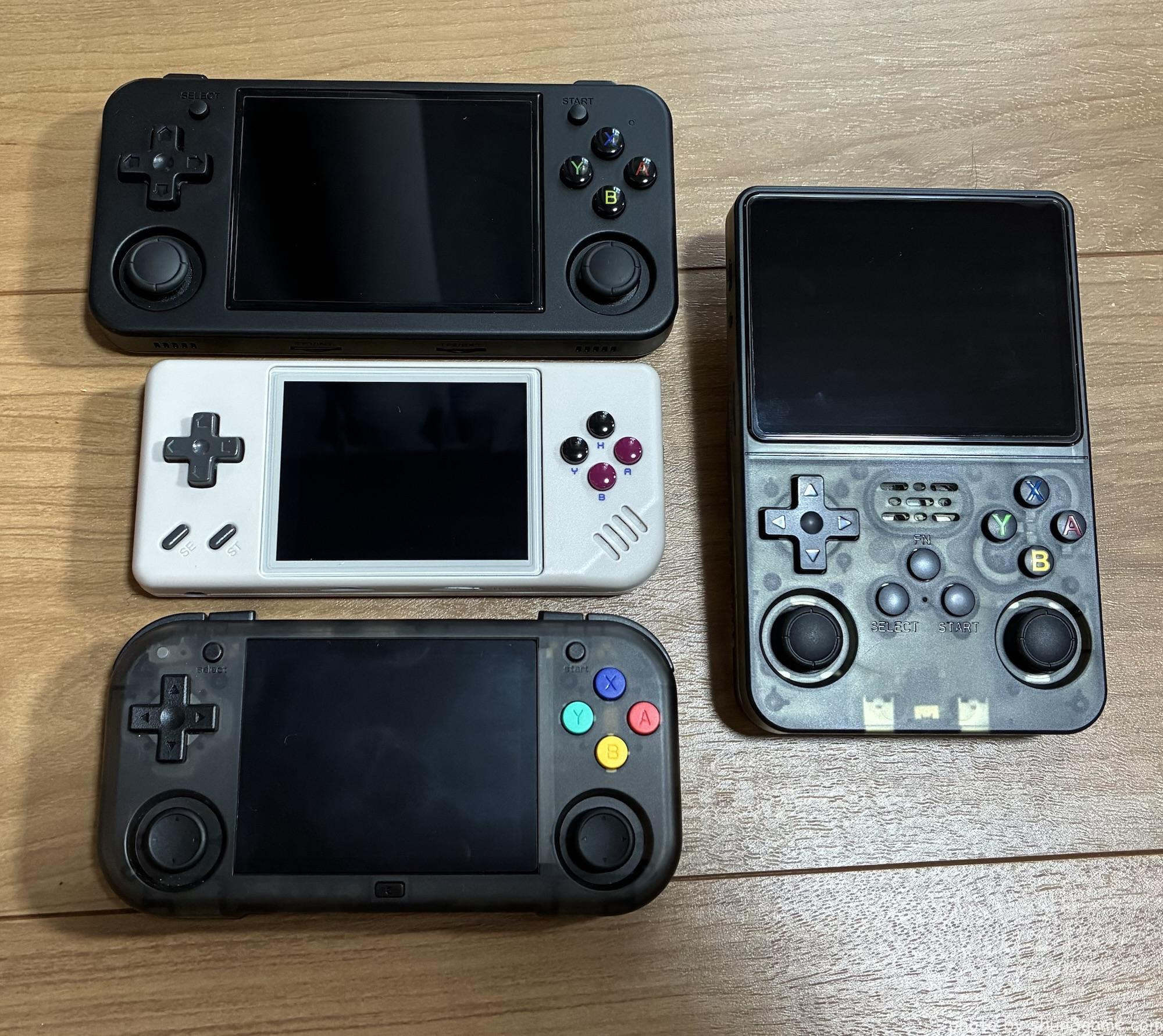 上からRG35XX H、RG28XX、MagicX XU Mini M、右がR36Sです。