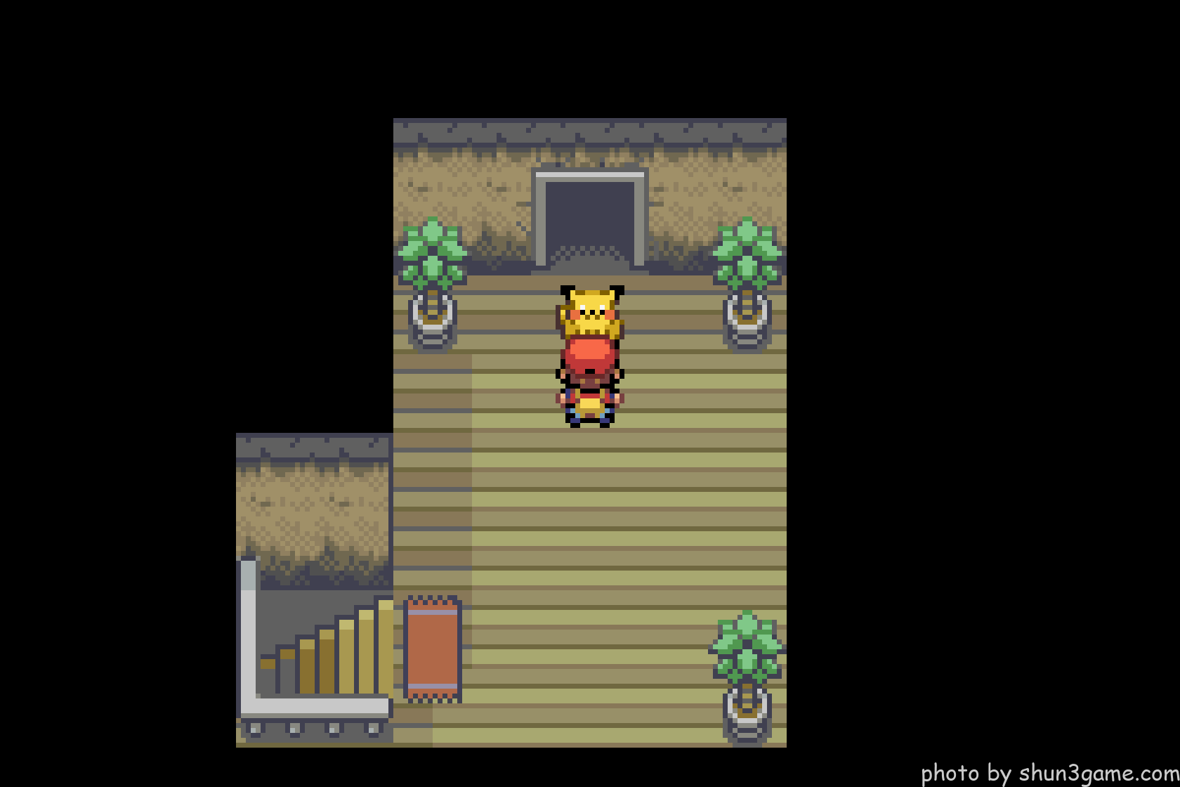 迷路のように入り組んだ室内を進んでいくとピカチュウ発見!