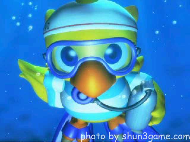チョコボが泳いで海を渡ります。